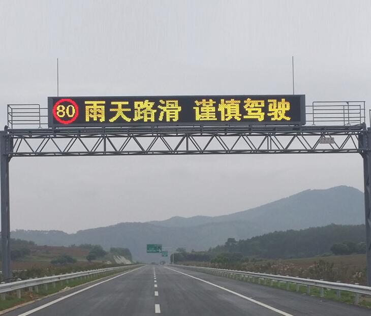 用于顯示道路的相關信息(事故、道路維護、惡劣氣象),對交通進行誘導。門架式可變情報板由設置在控制箱內的微處理器操作,微處理器通過信號傳輸系統(tǒng)和監(jiān)控中心計算機相連。