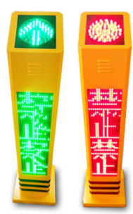 當(dāng)提示柱正常運行后,主柱和副柱上的 LED 屏?xí)瑫r亮起,紅燈時,LED 屏顯示“紅燈